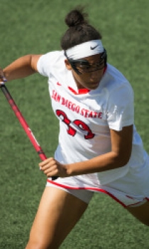 March 10, 2017 (San Diego) - Ijeoma Ikpe scored on a free positon shot with just under seven minute left to break a tied contest and the Aztec defense held firm over the final 6:43 as SDSU defeated St. Joseph’s 13-12, Friday night at the SDSU Lacrosse Field.