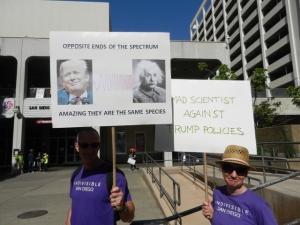 April 25, 2017 (San Diego) -- I've been protesting for over half a century. Never before the March for Science in San Diego Saturday have I seen a demonstration where everyone brought their own homemade signs.