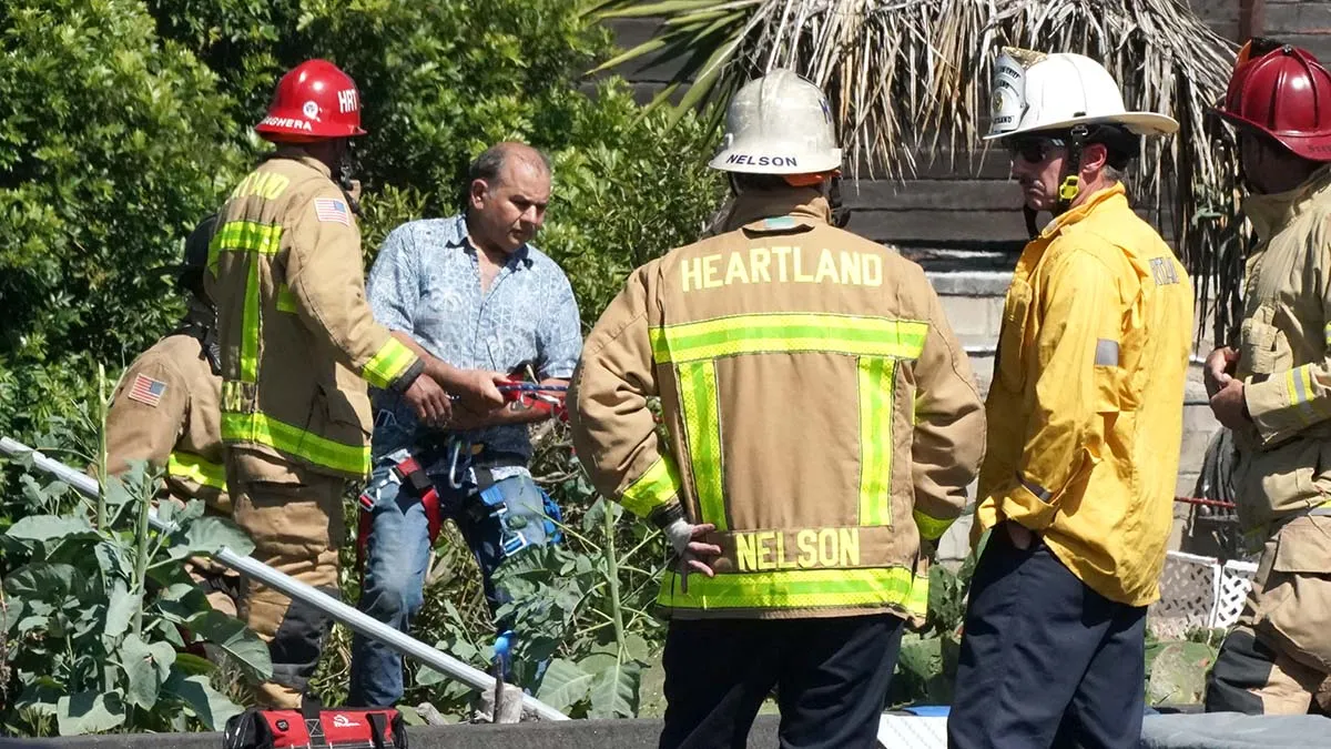 By Chris Stone, Times of San Diego, a member of the San Diego Online News Association Photo: a pilot of crashed Cessna (in blue) emerges from scene. Photo by Chris Stone