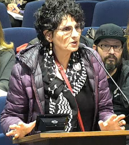 By Miriam Raftery Photo: Doris Bittar, a Lebanese-Palestinian woman with a Jewish husband, wants a resolution that protects everyone equally without infringing on free speech rights. March 12, 2025 (El