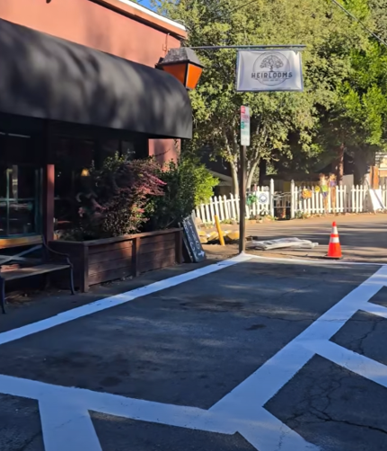 By Paul Levikow Photo: new parking configuration in front of Descanso Junction eliminated two-thirds of spaces and left no disabled parking access. Photos courtesy of Descanso Junction and Rett Lawrence,