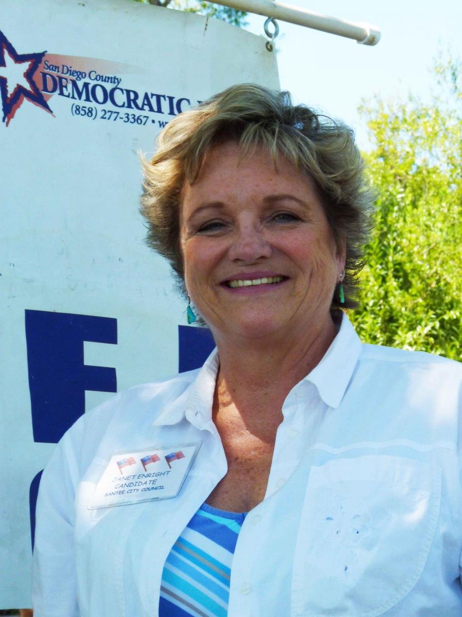 Enright, a retired administrator, says after 30 years of experience in county governance and leadership, both with the district attorney and the medical examiner, she “will be able to hit the ground running from day one.” She also has grant-writing experience that she hopes to utilize to find additional funds for Santee.