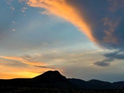 April 6, 2026 (Jacumba Hot Springs) – Martin Eder sent in this photo, taken along Interstate 8 just west of Jacumba near the San Diego-Imperial County line, after he attended the Magical Mystery Beatles tribute music festival at De Anza Springs Resort. The setting sun illuminated a plume in the sky,