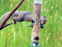 May 19, 2012 (San Diego County) — Sure, squirrels have to eat, too, and no one wants to harm the persistent critters. But that doesn’t mean you have to put up with squirrels scarfing down the seed you put out for the birds, damaging your feeders and bumping up your blood pressure. It’s possible to discourage squirrels—and even outsmart them—with the right seed mix and some nature-friendly squirrel-control tactics.
