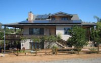 When Crest resident Glen Weischedel’s Craftsman bungalow burned to the ground during the Cedar fires, he found the opportunity to build a solar-ready, energy-smart home that not only paid homage to the architectural characteristics of the home his grandfather built decades before, but also harnessed passive and active solar techniques. Wrap-around verandas are oriented to welcome morning sun to warm the home, then block the hot mid-day rays. The angles of the south-facing rooftop are oriented to allow for optimum energy production, and a second-story balcony is plumbed with an outdoor faucet to allow for easy roof access and cleaning. (Solar panels are like windows. A good cleaning optimizes their functionality). Solar hot water panels are installed where rooftop space is limited, and solar PV where the hip roof allows for larger arrays. A recent UCSD study shows that rooftop solar not only reaps tax credits and saves on energy bills, the arrays serve as insulators, keeping households up to 5-degrees cooler in the summer and warmer in the winter.
