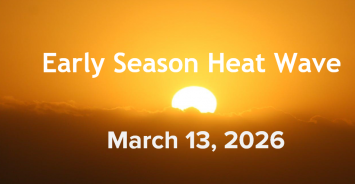 March 14, 2026 (San Diego’s East County) – An extreme heat watch has been issued by the National Weather Service for San Diego County over the next week. Temperatures will start to climb Sunday, with high temperatures 20 to 30 degrees above normal starting Tuesday. By mid-week, temperatures above 100 degrees are forecast, with potential to break record high temperatures.
