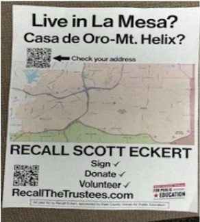 Jason Balistreri, a Mount Miguel High School Teacher Librarian, voiced rage against Gary Woods, Scott Eckert (see recall flyer, left), Jim Kelly and Robert Shield directly, and accused them of bias.