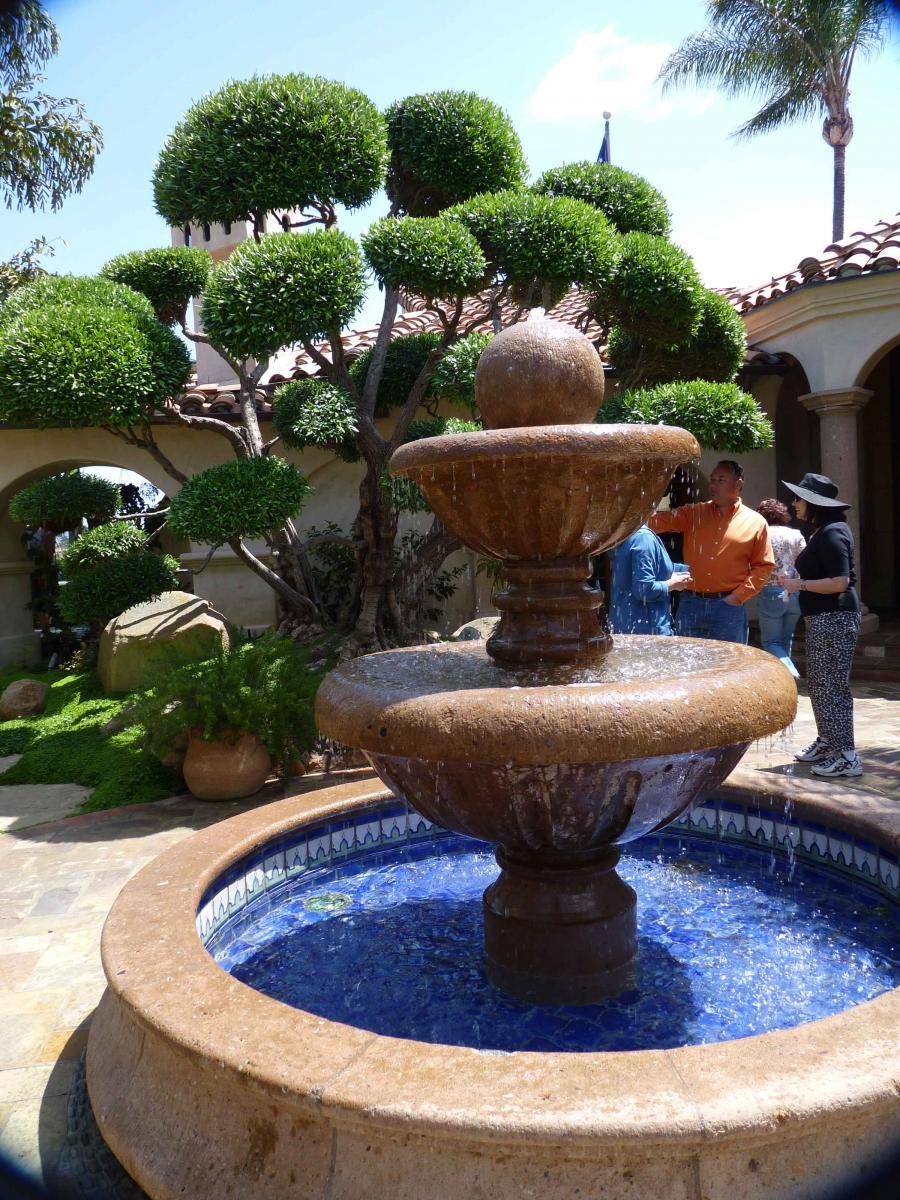 Wrought iron gates and a replica Camino Real bell welcome visitors to this estate, where several weddings have been held. The grounds include an oval lawn bordered by bonsai-style pines, sycamore, towering podacarpus, bottle trees and more.