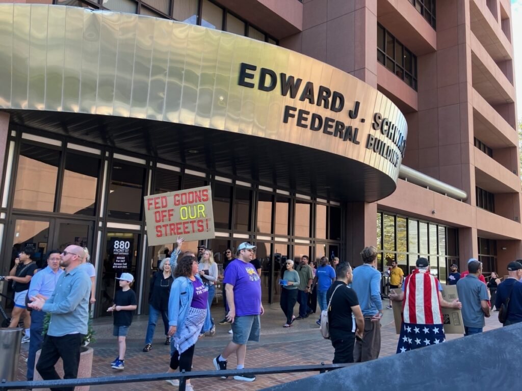 “I’m proud to be here with you. I’m…sad that we’re all here in front of the federal building having to have this advocacy and knowing that it’s going to take people being out here week after week until things actually change. It’s a difficult time. There is some sense of hopelessness,” Lee said. “We do need to stand up. We’re in a city where we have federal employees who aren’t getting paid for the work they are doing. The folks who are being impacted by ICE, they’re not just our neighbors. They’re not just parents and our grandkids, and friends and families and coworkers. They impact every single community.”