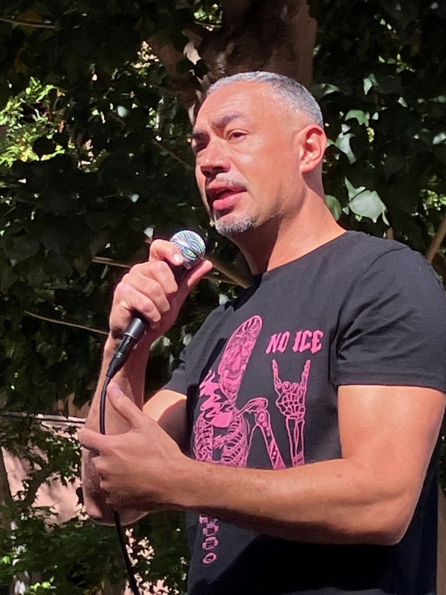 October 10, 2025 (San Diego) – The weekly ICE Out of San Diego rally at the San Diego Federal Building downtown yesterday focused on the government shutdown, while also including messages about ongoing Immigration and Customs Enforcement agents’ detention efforts.