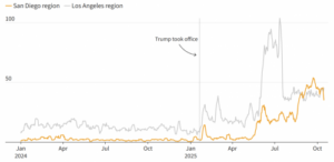 In September and October, federal immigration officers arrested more than twice as many people in the San Diego region than they did in all of 2024, according to government data.