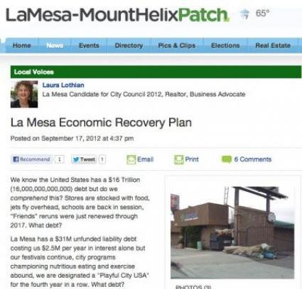 During the 2010 election, questions also swirled around an incident in which Lothian’s daughter, then 19, was arrested for violating La Mesa’s social host ordinance for a drinking party involving numerous minors at the candidate’s home. Lothian denied knowledge but further, accused another candidate of libel and insisted that her daughter was never arrested.