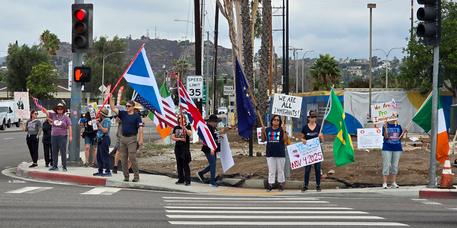 East County News Service Photo via Indivisible North County San Diego and 50501 North County San Diego September 29, 2025 (Escondido) – Approximately 100 residents from Ramona, Temecula, Escondido, San