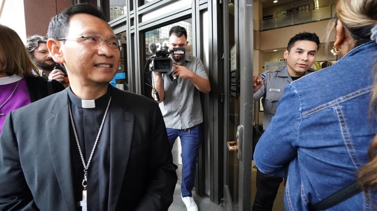 ICE AGENTS SCATTER AS SD BISHOP PHAM, CLERGY VISIT IMMIGRATION COURT