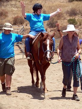 The next rider is 13-year-old Laurel Mackey from Lemon Grove, who has been enrolled in the program for a year. Laurel has epilepsy and other complications as a result of chemotherapy for leukemia when she was two years old. To overcome the cancer, she underwent 18 spinal taps. (New protocols since then have made chemotherapy much safer for young patients.)