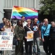 April 30, 2012 (San Diego) — Marriage equality activists charged with misdemeanors from an August 19, 2010 protest will be in court Monday morning. The “Equality Nine” are nine protesters who were arrested during a peaceful “sit-in” for marriage equality. Jury selection begins in their case Monday, April 30 at 10 a.m. before Judge Joan P. Weber in San Diego County Superior Court, 220 West Broadway, in downtown San Diego.