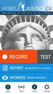 East County News Service May 20, 2015 (San Diego)–The ACLU of California has launched Mobile Justice CA, a free smart phone app allowing Californians to automatically record and submit cell phone videos to their ACLU affiliate when they feel law enforcement officers are violating civil rights. Videos captured on the Mobile Justice CA app available for use on Android