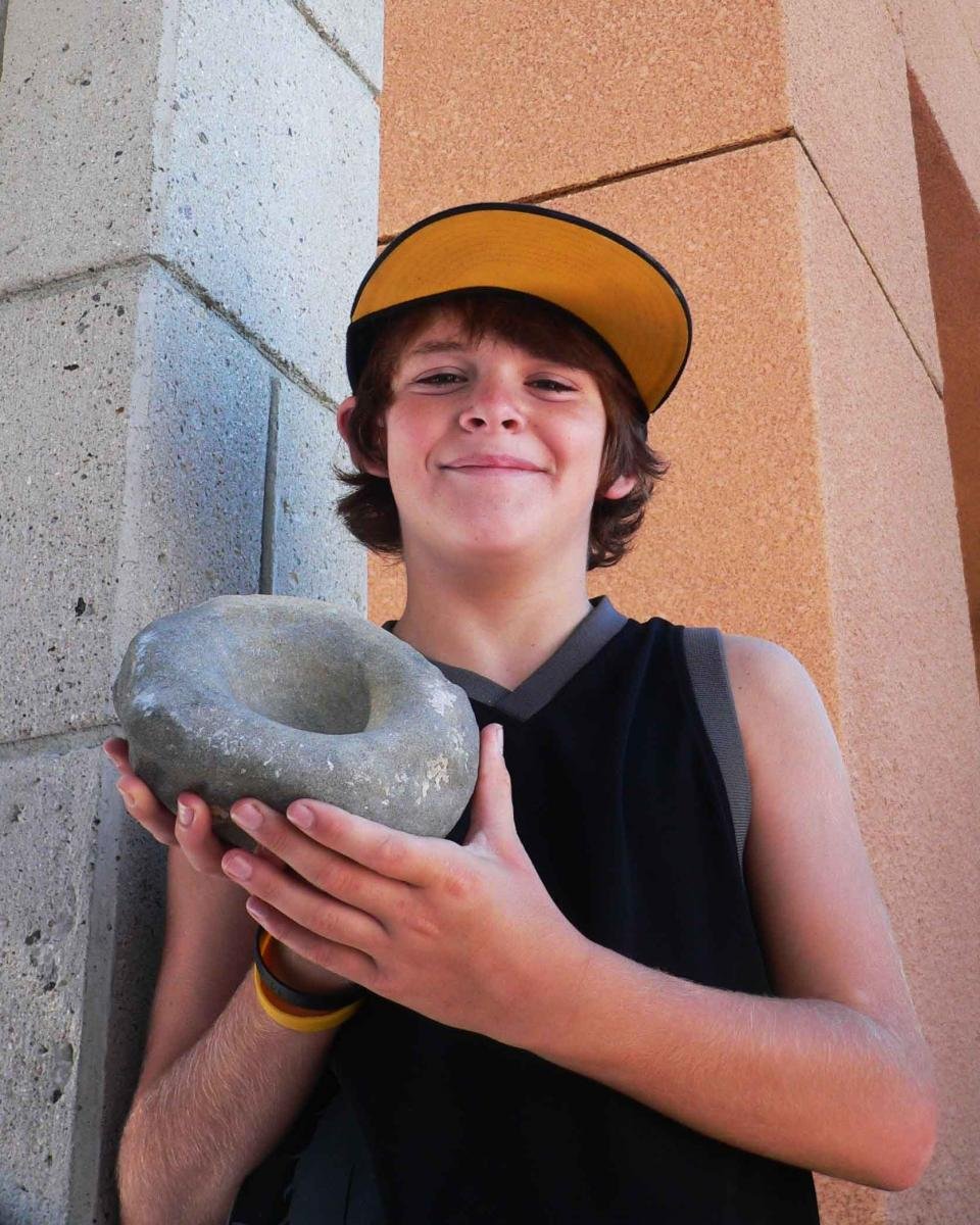 around artifacts used by the children’s ancestors, such as a bowl carved from volcanic rock.
