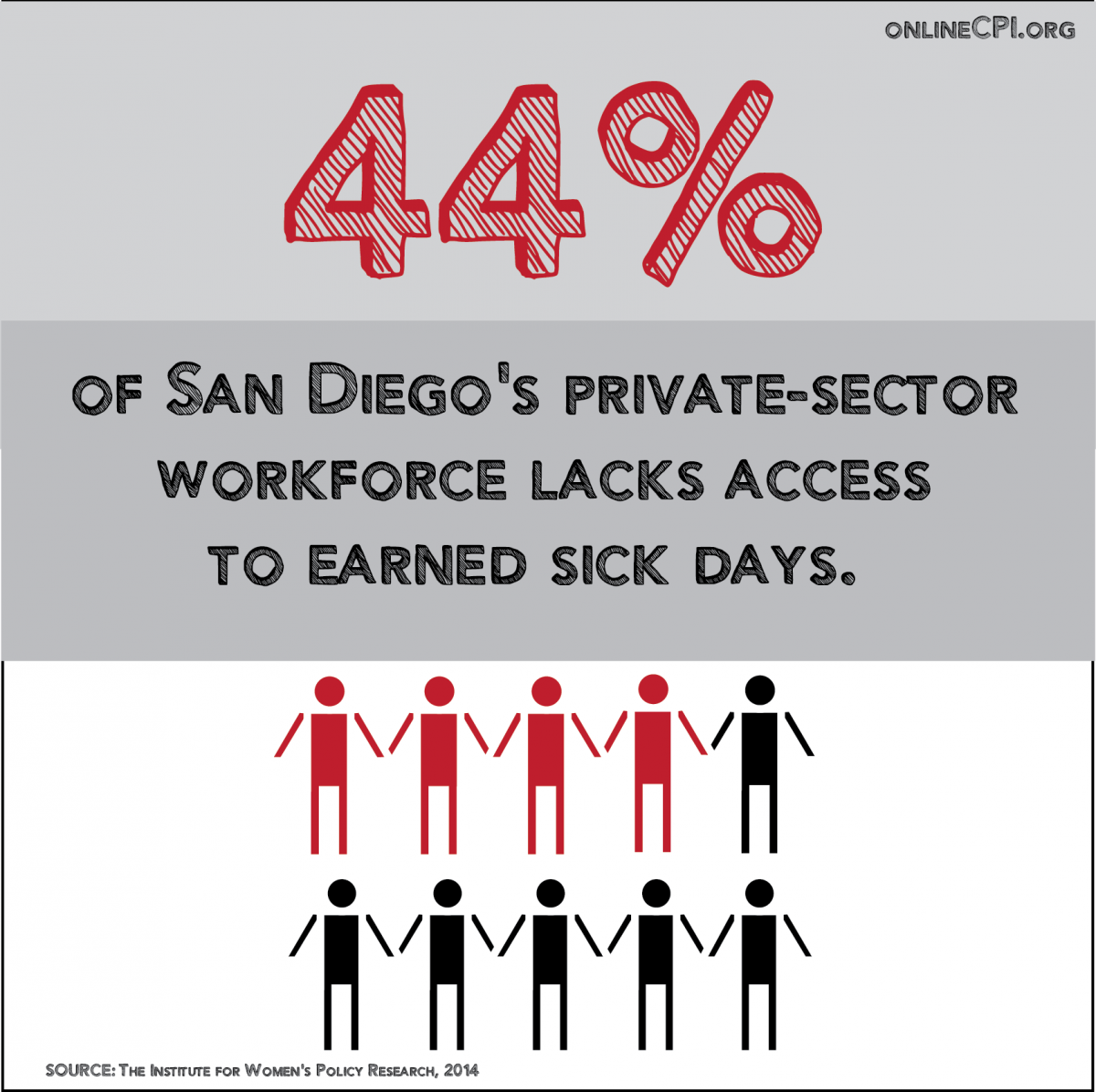 A new analysis by the Institute for Women’s Policy Research (IWPR) finds that 44 percent of San Diego’s private sector employees lack access to a single earned sick day. Among Hispanic workers here, 55% lack access to earned sick days.
