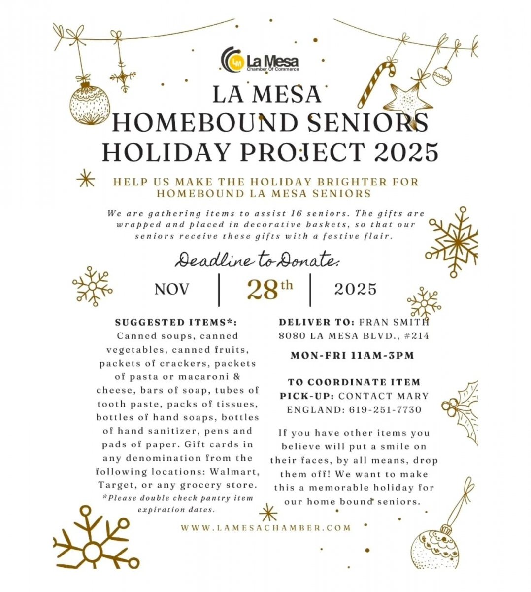 East County News Servie Nov. 23, 2025 (La Mesa) – The spirit of giving is starting already in East County with the launch of the La Mesa Chamber of