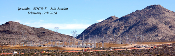 February 15, 2014 (Jacumba)—Wayne Brammer sent in these photos of SDG&E’s new Eco Substation in Jacumba. The project is (so-named for hooking up to industrial-scale renewable energy projects. But to most backcountry residents, the project is an ecological disaster that destroyed the landscape and used three times more water (90 million gallons total) than SDG&E estimated.