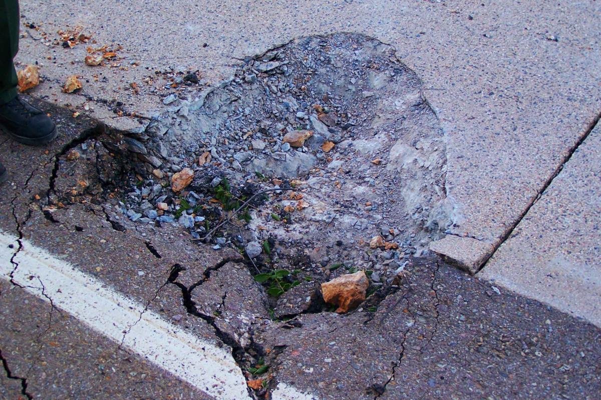 Cal-Fire reports a four-by-five foot boulder tumbled a thousand feet onto Old Highway 80 near Buckman springs, causes a foot-deep hole in the road.
