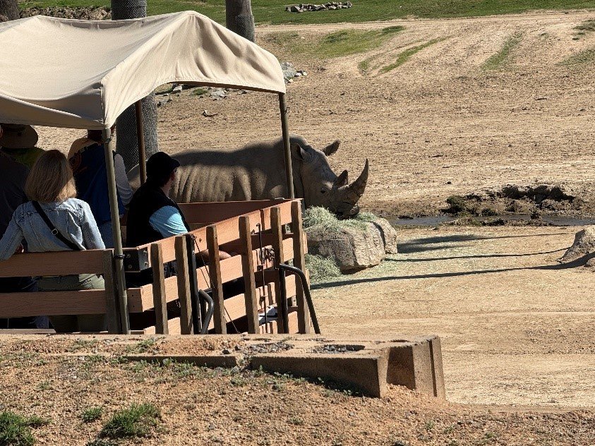 Photo, right, by Miriam Raftery, ECM editor: Wildlife Safari guests get up-close look at rhinoceros