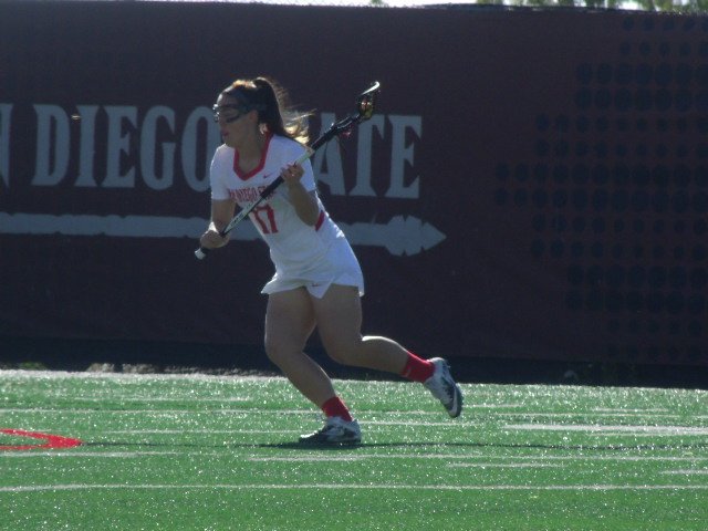 of their own from McMahon, her hat trick goal. Trojan sophomore ophia Donovan got on the board shortly after with her first goal. Two more Trojan goals later, senior Jill Haight stopped the bleeding a little bit for the Aztecs with a goal on a rebound. Senior Caitlin Jones scored on a penalty shot. But the Aztecs fell behind quickly as Anhut scored again to keep the Trojans ahead. The Trojans reached doubl