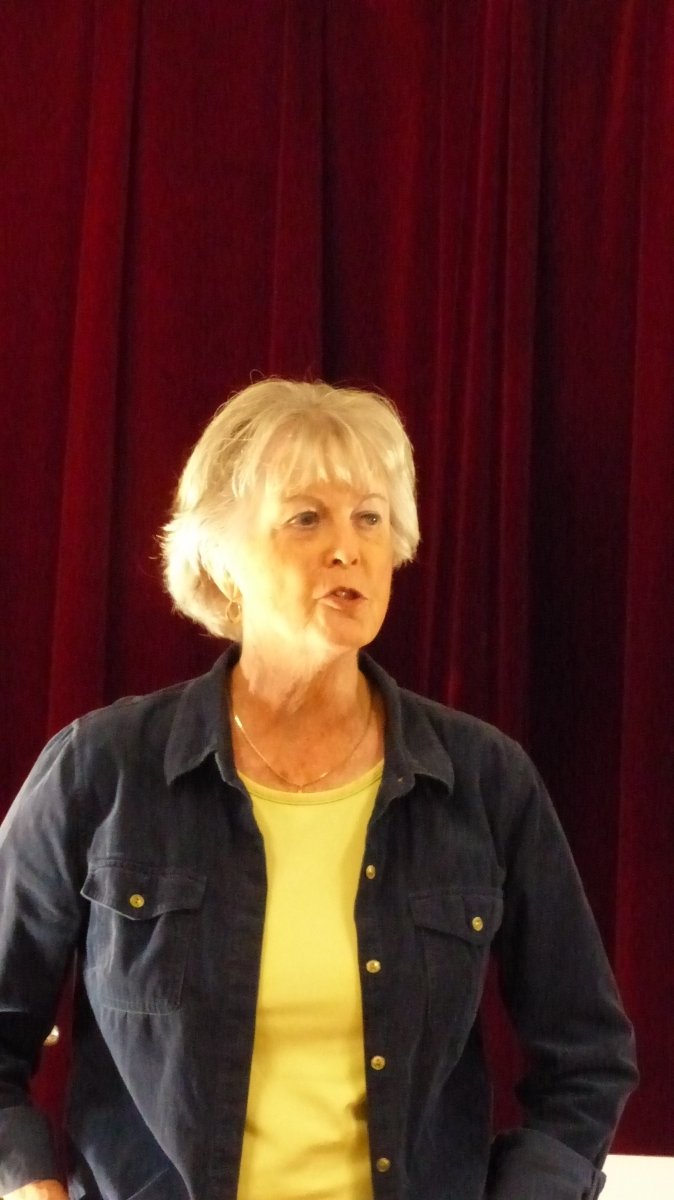 Photo, left, by Miriam Raftery: Audience members at Julian Town Hall; many seats were emptied as residents rushed home after hearing news of the Sawday Fire prompting evacuations and threatening homes between Ramona and Julian