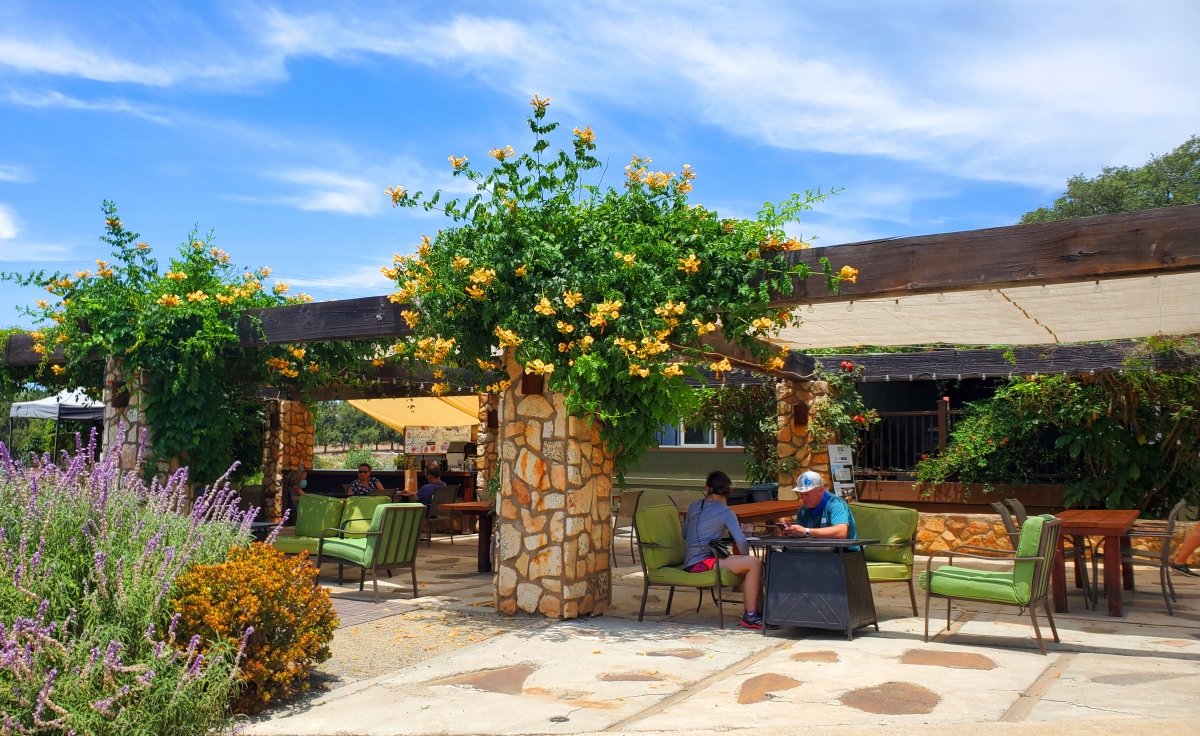 Photo, left: Outdoor patio at Vineyard Grant James in Ramona provides ample social distancing for wine-tasting guests