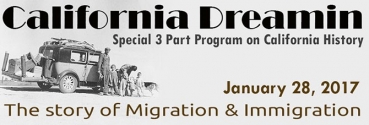 January 18, 2017 (Borrego Springs) – The Anza Borrego Desert Natural History Association will present a three-part program titled “California Dreamin’” on the story of migration and immigration. All three parts will be presented on Saturday, January 28th and will encompass the history of the early Californians, Western women, and the impacts of immigration on Native Americans.