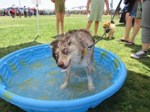 A dog cools off in a pool at a previous Fido FestSantee city officials have issued a few guidelines that state that all dogs at the event must be social, friendly and comfortable in large crowds; puppies must be more than 4 months old with full vaccinations; and all dogs must remain on a leash of a maximum 6 feet (non-retractable preferred).