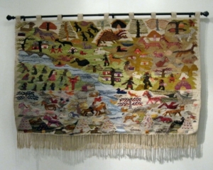 The second exhibit is Narratives of Resilience: Reimagining Homeland. This retrospective by Patrick Breslin showcases a series of weavings by another resilient group of Colombian women in San Isidro, a “barrio” outside of Bogota. These tapestries were collected by Deborah Szekely’s during her Inter-American Foundation years, 1984-1991.