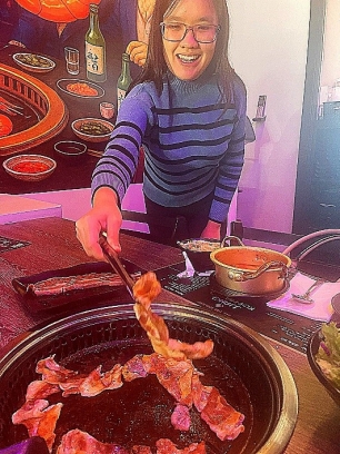 December 21, 2025 (La Mesa) - JJang BBQ, a new all-you-can-eat Korean barbecue restaurant in La Mesa, delivers a traditional Korean eatery ambience from sizzling hot meats that you cook at the table to tangy sides and a colorful painting on the wall. I cooked and tasted three different meats, including pork belly (samgupsal), Bulgogi beef and boneless beef rib. Each has a mouthwatering Teriyaki flavor. I was overjoyed at the distinctively savory tastes and textures; some layers were soft, some were chewy.