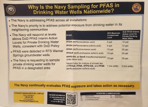 The Navy has started to conduct tests on well water on private properties nearby and held the meeting to share information and answer questions from the public as they launched testing this month.