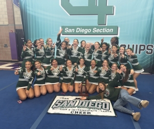 Jan. 7, 2026 (La Mesa) — After three consecutive years of finishing as runners-up, the Helix Charter High School competitive cheer team finally reached the top of the podium, capturing first place in the Division 2 Large group at the San Diego Section CIF Traditional Competitive Cheerleading Championships competition in Carlsbad.