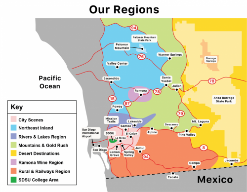 Other towns to visit include Santa Ysabel, Wynola, Descanso, Pine Valley, Guatay, and Warner Springs.