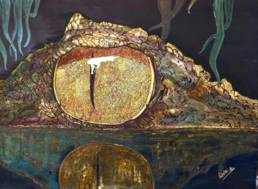 Award-winning juror Rikki Reinhoz said of the painting Cool Frog, “This painting has a wonderful composition. It has a nice circular swirl to it, and in the middle the frog is just suggested, which makes the whole painting make sense. The colors and the brush strokes are what make it so exciting and inspiring.”